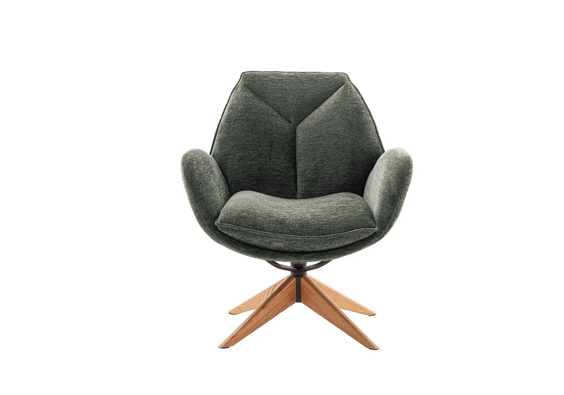 Fotel dostępny w czterech kolorach obić tkanin oraz w trzech rodzajach podstaw.