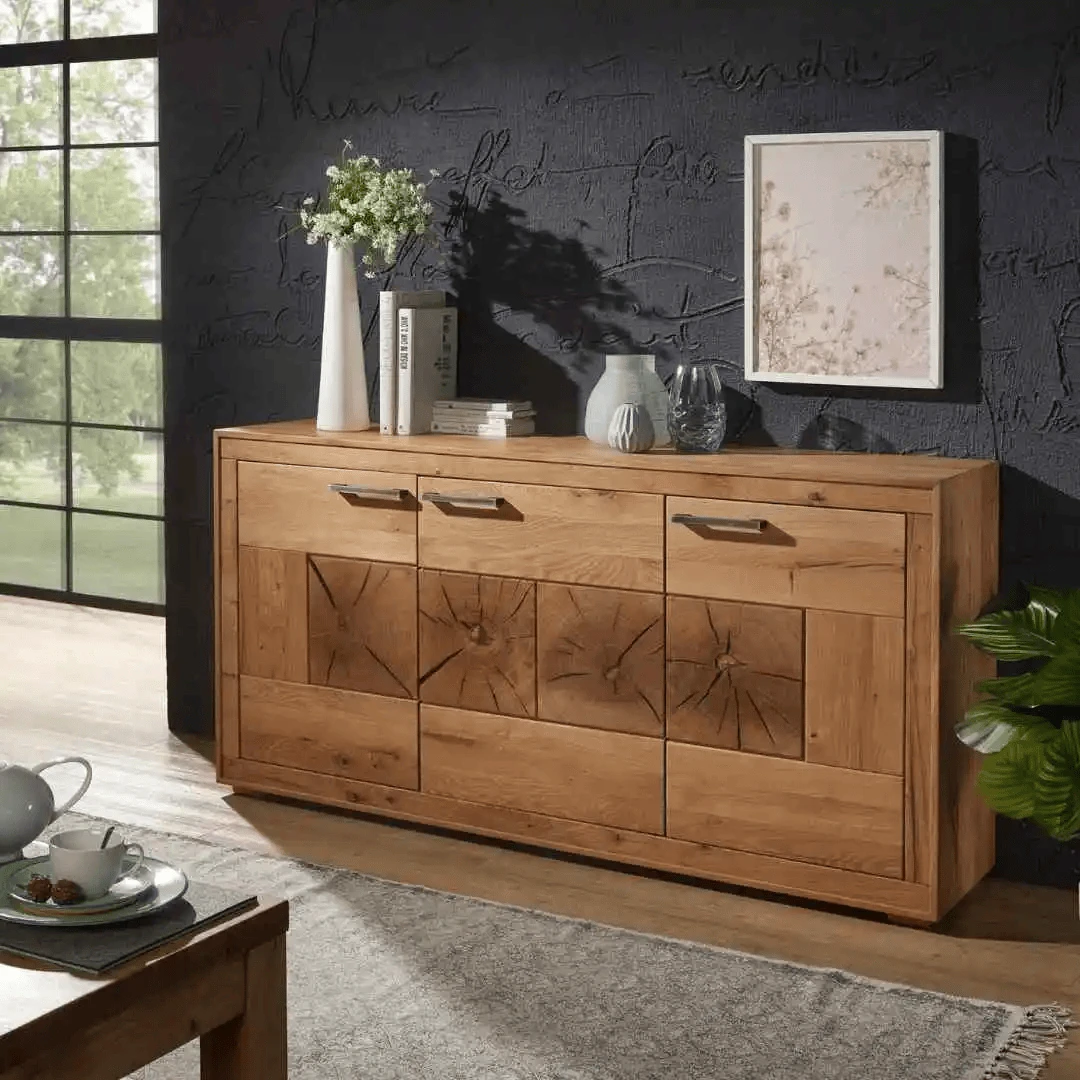 Ta komoda to solidny mebel o ponadczasowym wyglądzie, wykonany z litego drewna dębowego.