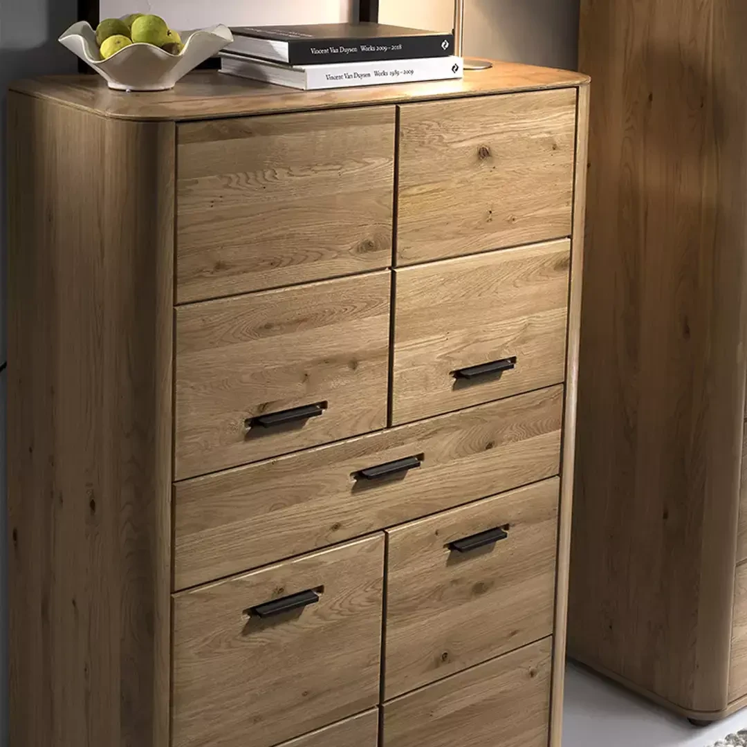 Kompaktowa, a jednocześnie pojemna – komoda Monaco wyróżnia się klasyczną formą z charakterystycznymi dla kolekcji zaobleniami. Naturalne materiały, takie jak lite drewno dębowe i okleina, zapewniają trwałość i wyjątkowy wygląd.