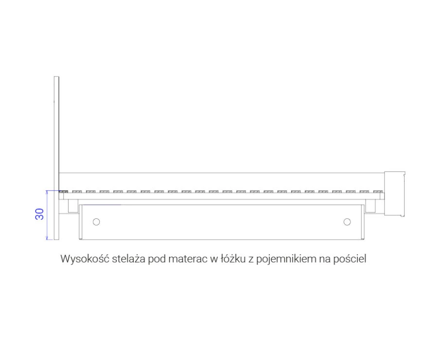 Dodatkowo posiada opcjonalny schowek na pościel z podnośnikiem materaca, który ułatwia przechowywanie.