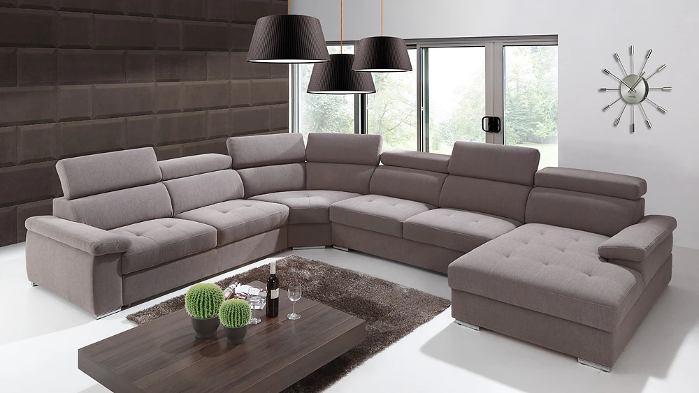 Regulowane zagłówki zapewniają idealne podparcie dla głowy i karku, zwiększając komfort wypoczynku, natomiast szeroki podłokietnik pozwala wygodnie oprzeć się bokiem. Całość dopełniają solidne chromowane nogi o eleganckim połysku z możliwością wyboru także wariantu drewnianego.