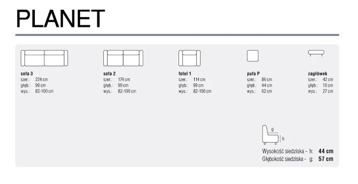 Sofy i fotele z kolekcji Planet zostały zaprojektowane z myślą o maksymalnej wygodzie użytkowania. Profilowane oparcie z dodatkowym zagłówkiem zapewnia doskonałe podparcie głowy i karku, gwarantując relaks na najwyższym poziomie.