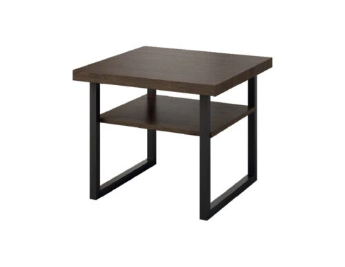 Nowoczesny stolik kawowy Faros to połączenie funkcjonalności i eleganckiego designu. Posiada blat i półkę z naturalnej okleiny dębowej, wsparty na czarnej, metalowej podstawie.