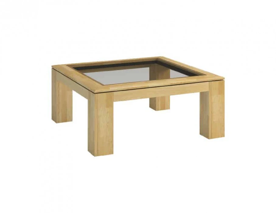 Stolik Rossano to kwadratowy stolik z przeszklonym blatem, wykonany z litego drewna dębowego. Dostępny w kolorach dąb bianco naturalny oraz dąb notte brąz. Powierzchnia została zabezpieczona lakierem odpornym na wysokie temperatury i alkohol, co zapewnia trwałość i łatwość użytkowania.