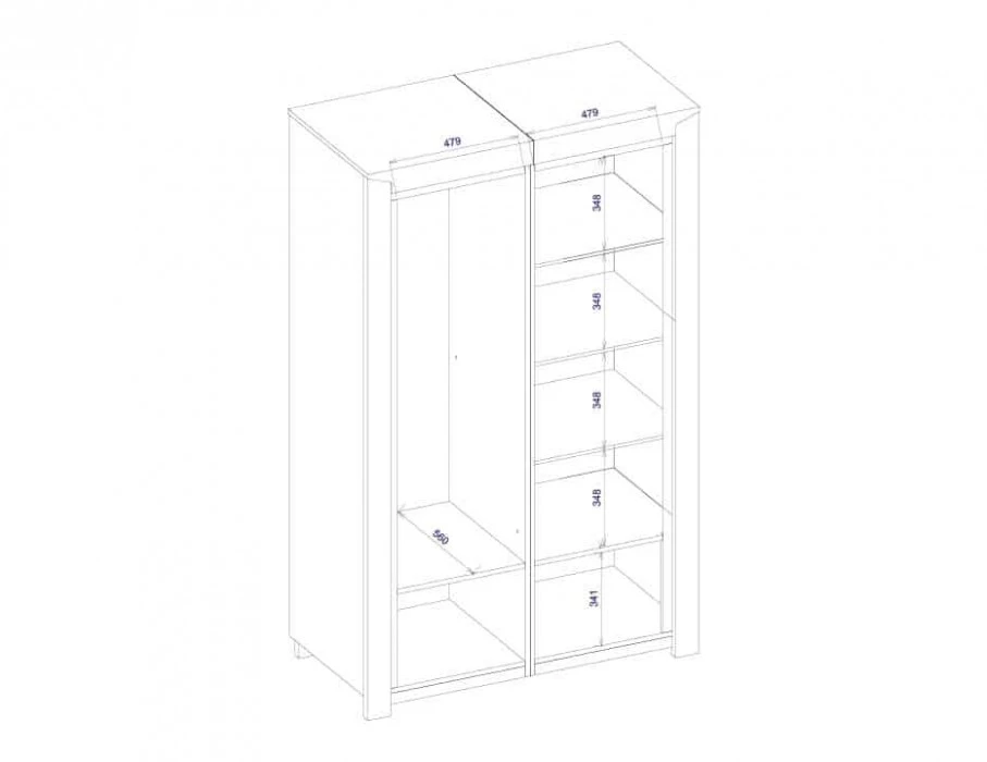Wnętrze oferuje 3 lakierowane półki oraz 1 drążek, co pozwala na wygodne i uporządkowane przechowywanie ubrań.