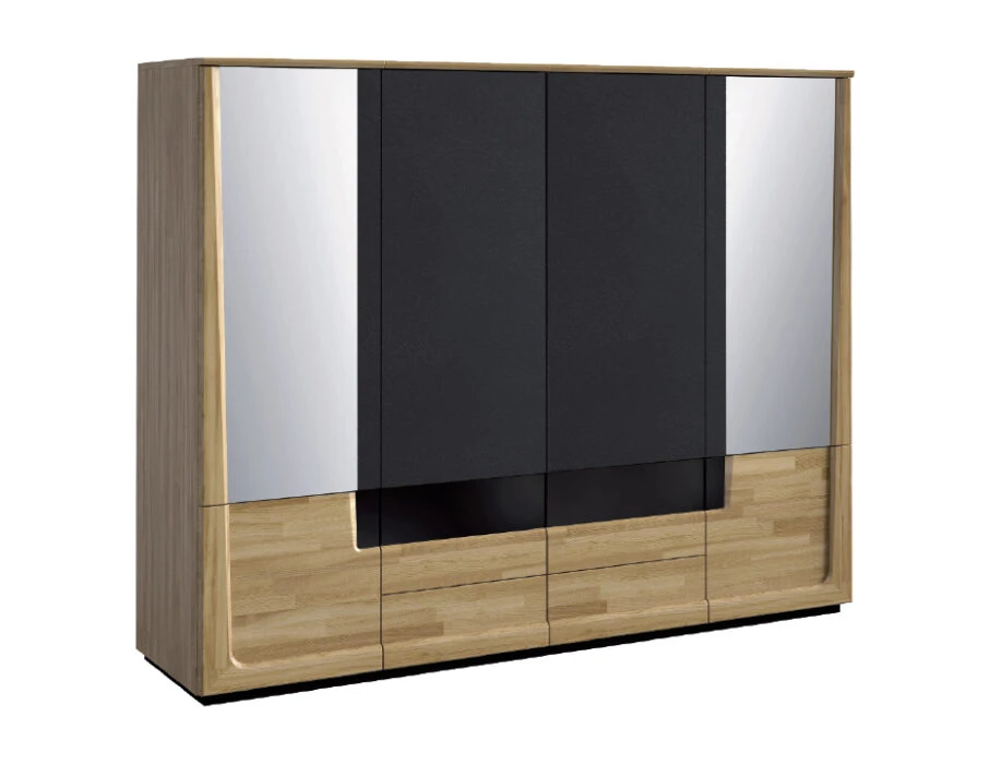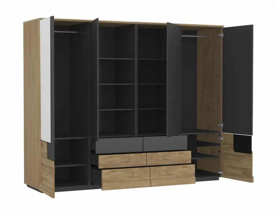 Szafa 4D z kolekcji Maganda to połączenie nowoczesnego designu z naturalnymi materiałami i funkcjonalnością, idealna do przestronnych wnętrz.