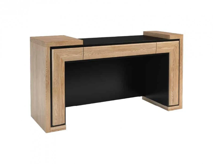 Toaletka z kolekcji Corino to elegancki i funkcjonalny mebel stworzony z myślą o stylowych wnętrzach. Wykonana z drewna dębowego i wykończona eleganckim blatem ze szkła Lacobel, zachwyca subtelnym połączeniem nowoczesnych materiałów i klasycznego rzemiosła.