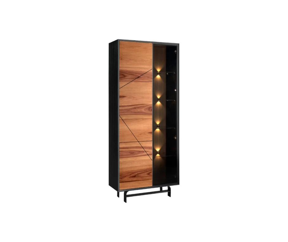 Witryna 2-drzwiowa Verano z oświetleniem LED to elegancki mebel łączący naturalne materiały z nowoczesną funkcjonalnością. Wyposażona w jedne drzwi pełne i jedne przeszklone, oferuje miejsce zarówno na ekspozycję, jak i przechowywanie.